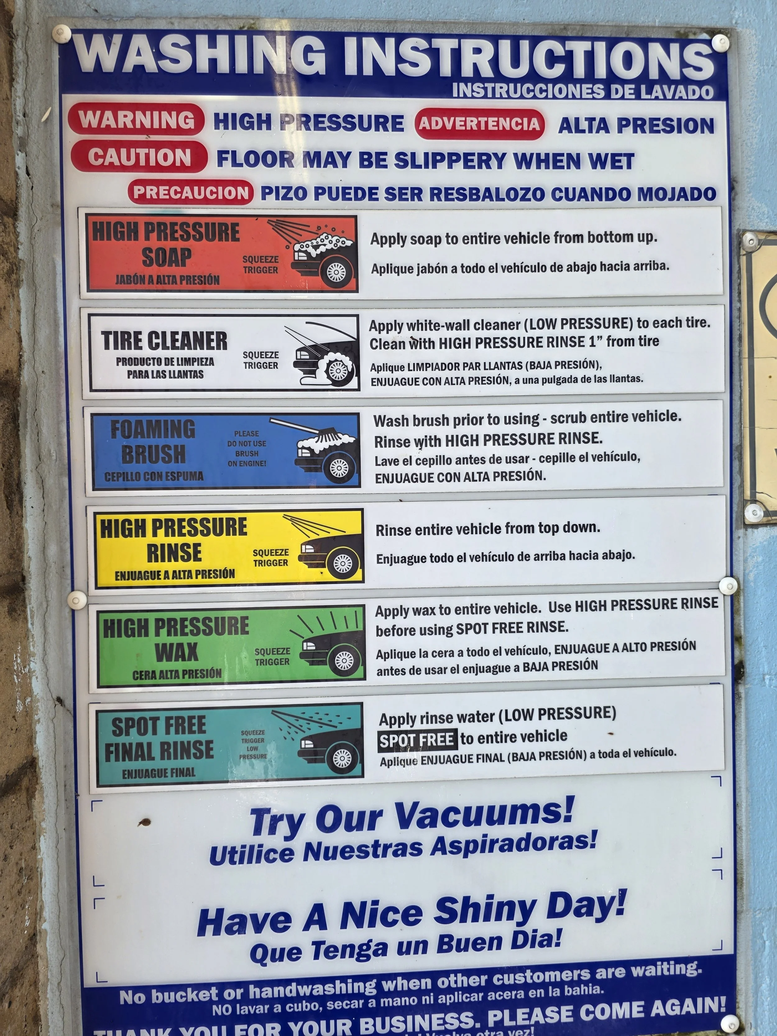 We offer STANDARD carwash STARTING PRICE CASH $4.25 FOR 4MINS AND 30 SECONDS AND CREDIT CARD $8.50 FOR 9MINS 30 SECONDS.
